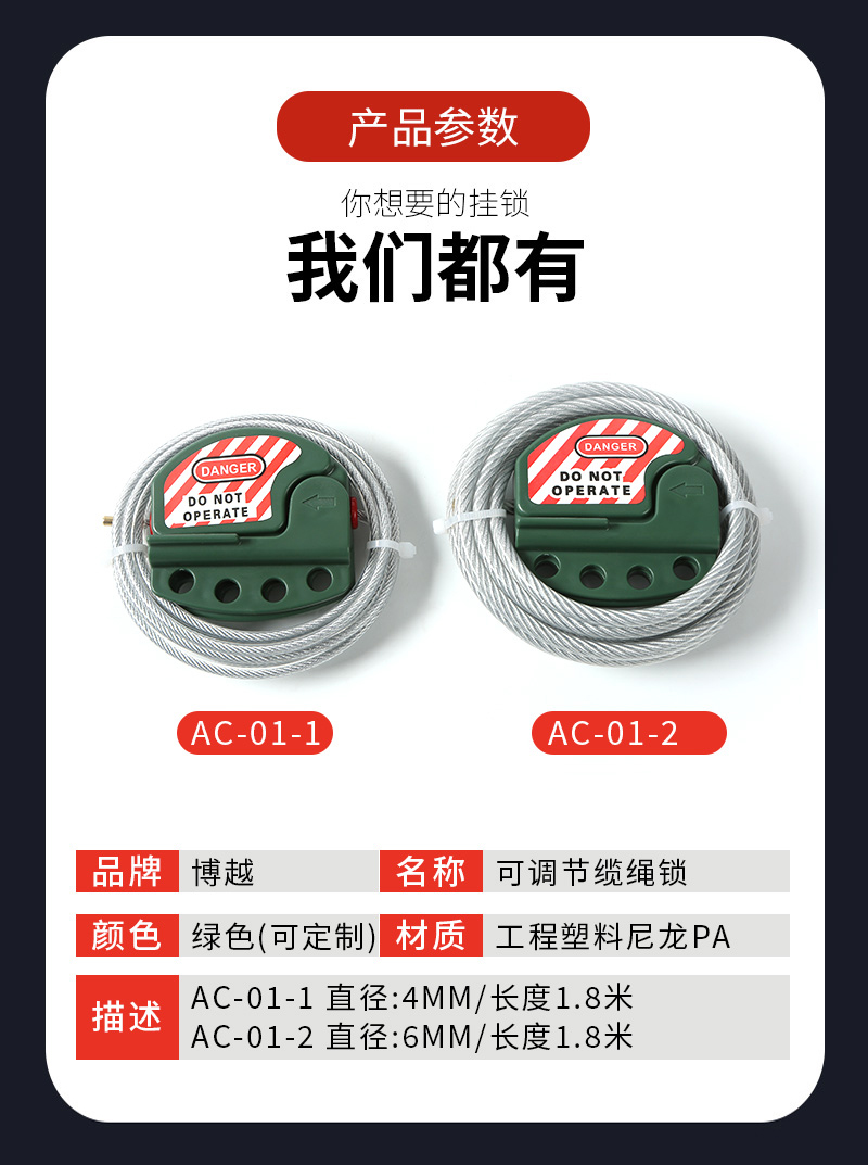 可調節纜繩鎖